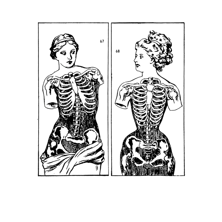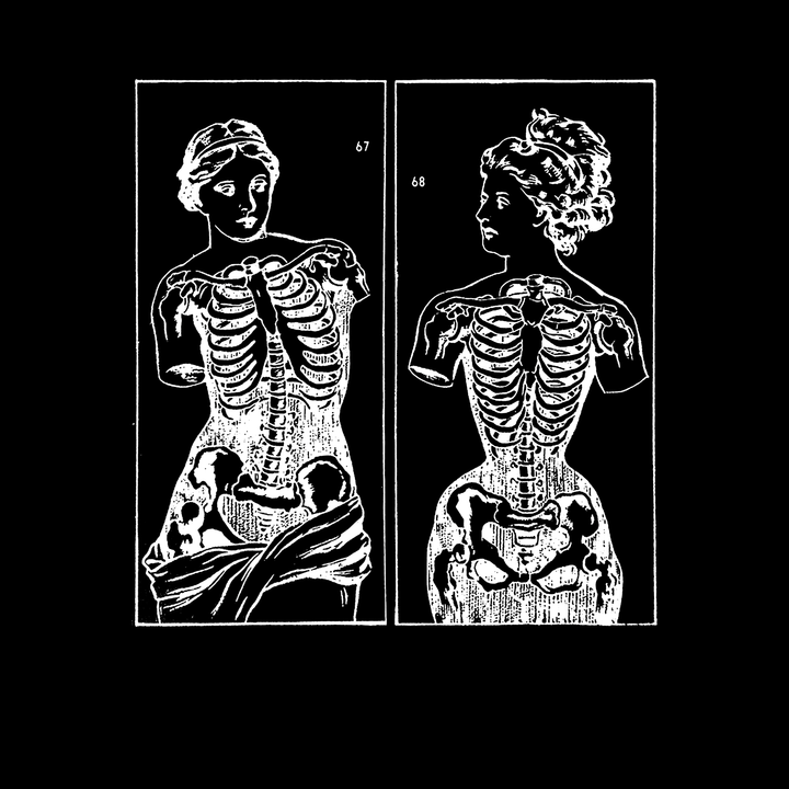 Our BOUND INTERNAL shirt features a unique design of an x-ray view of two vintage-styled women.