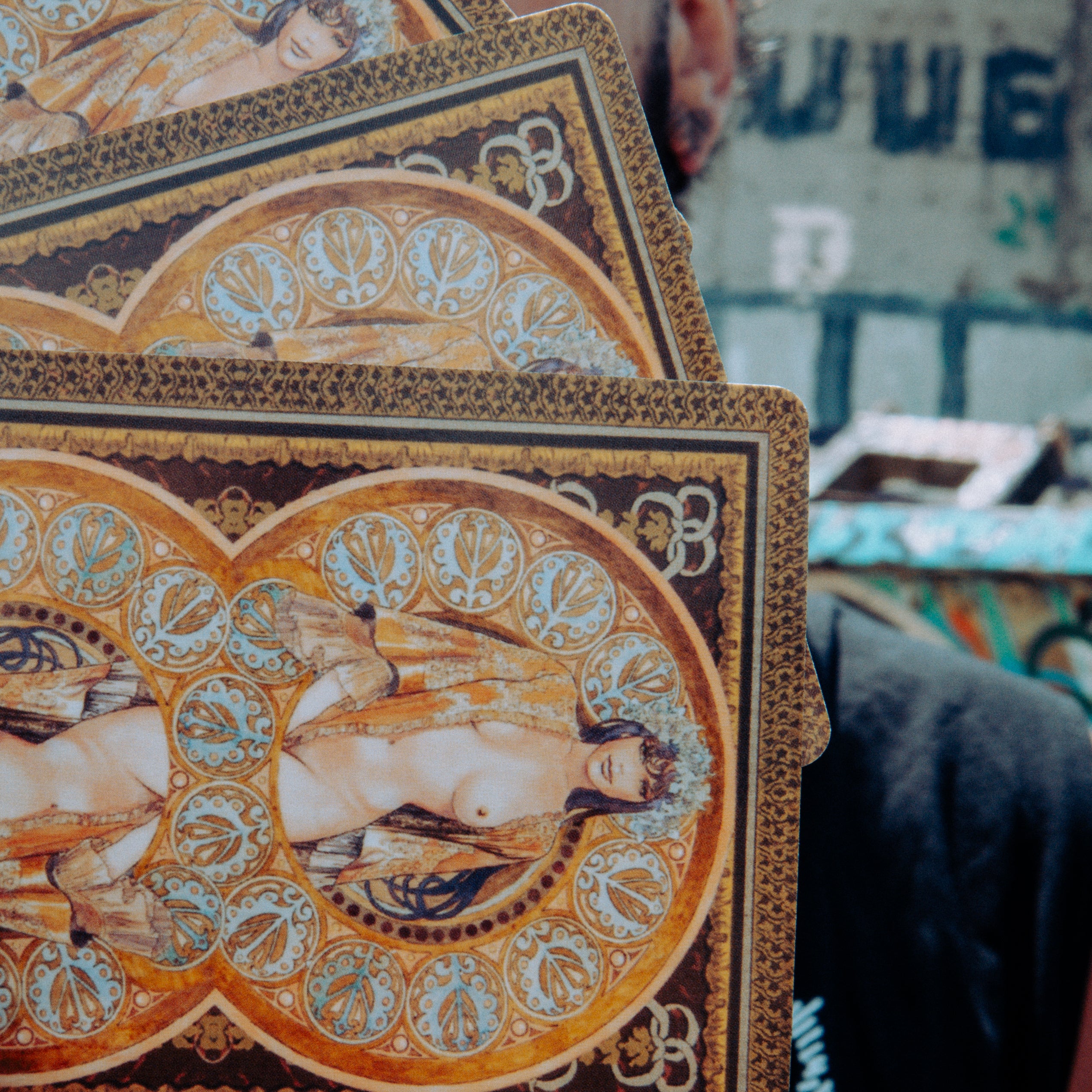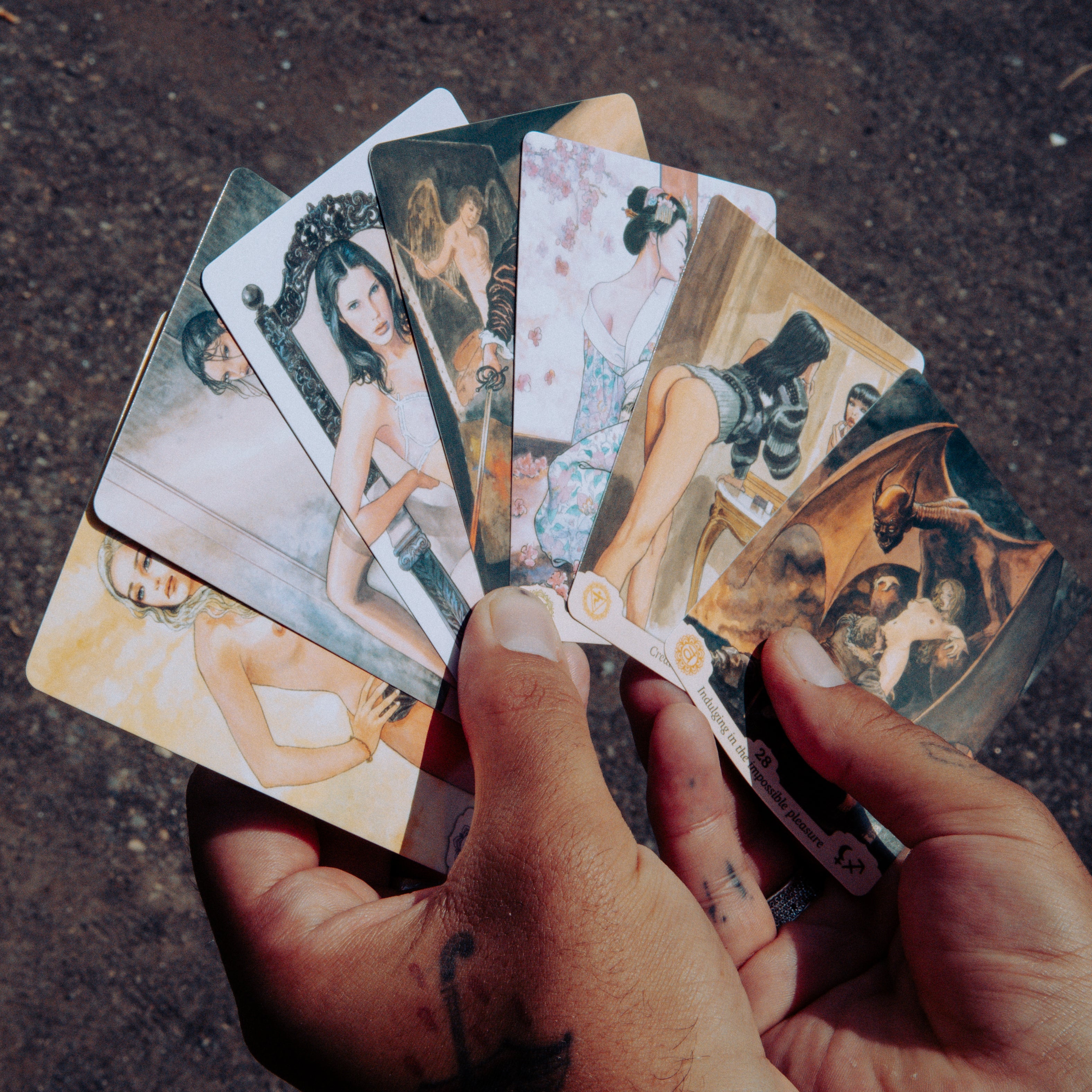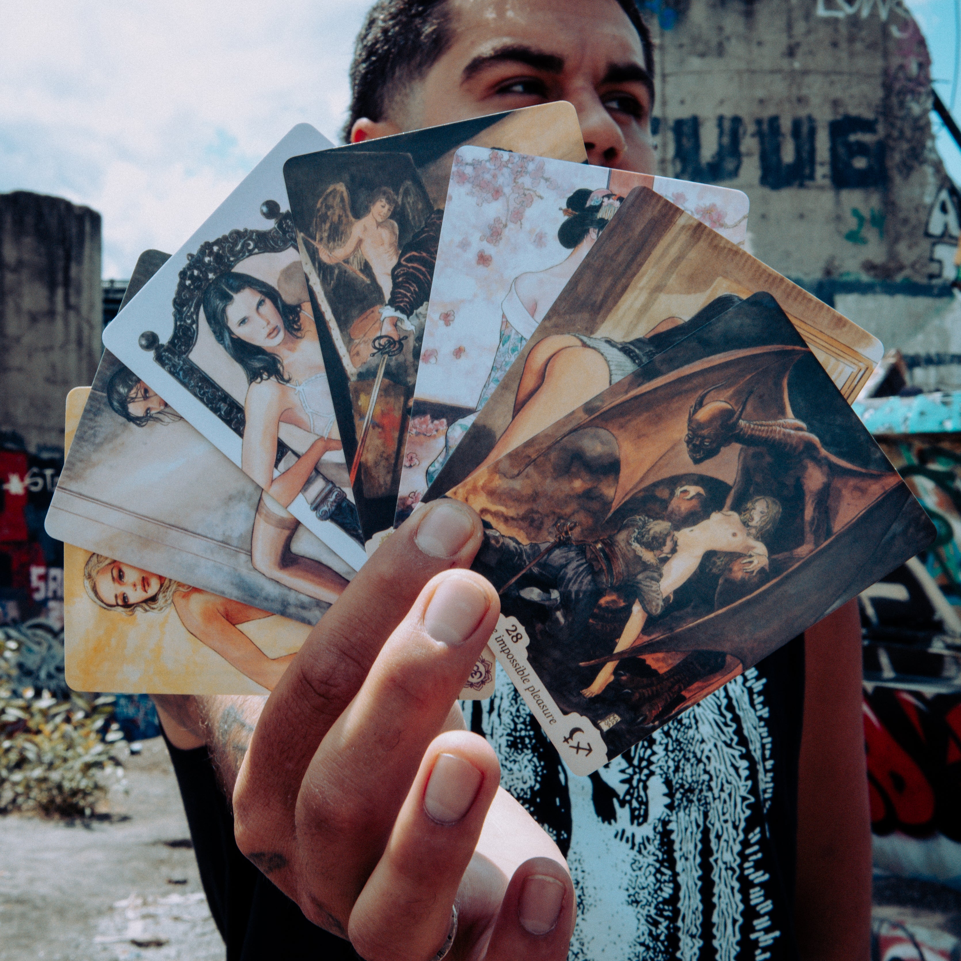 Sure, bring it to work… I mean, if you think it’s fine. 35 erotic art cards in the deck. Box artwork may vary.