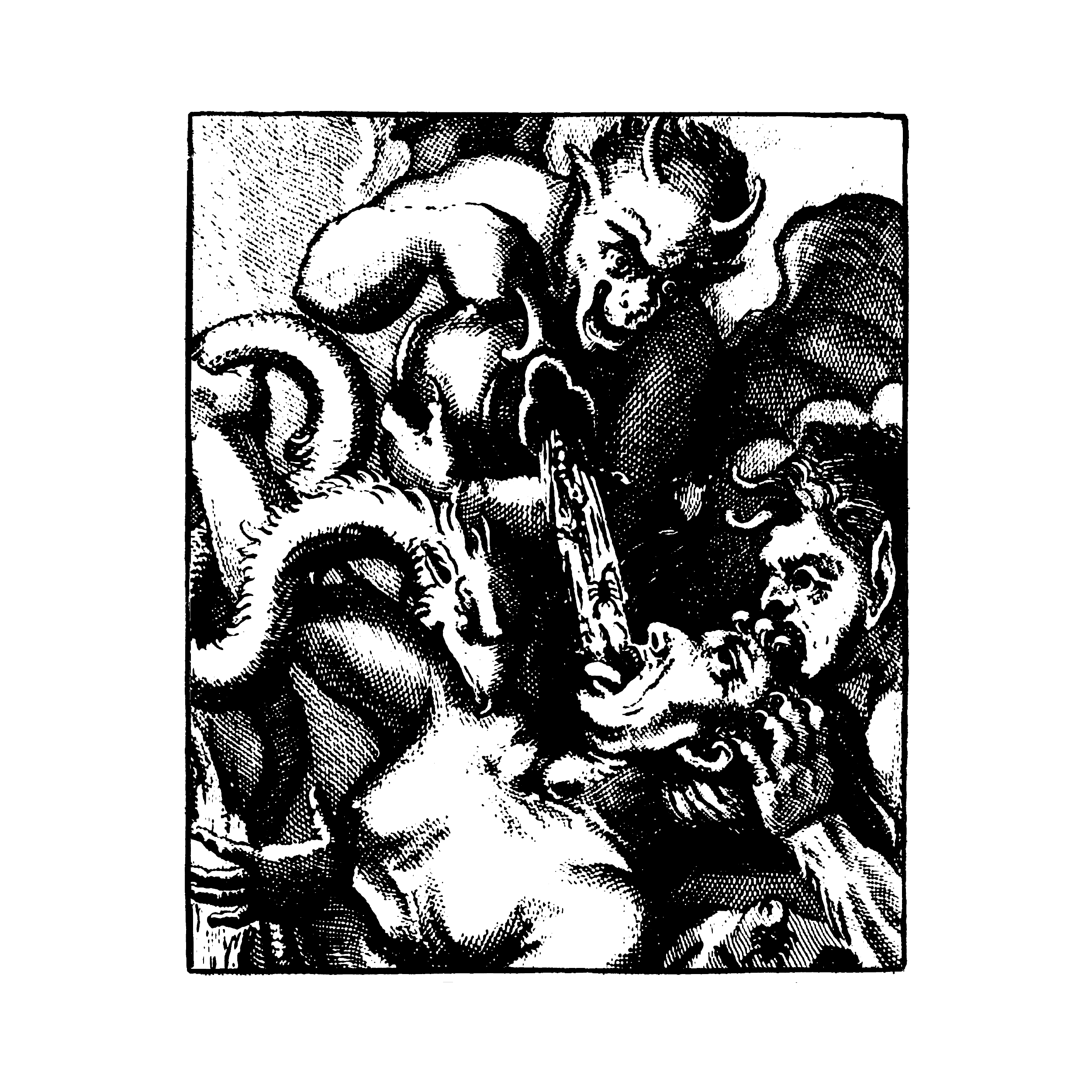 A demon pouring a bucket of scorpions into a dude's throat! Badass!